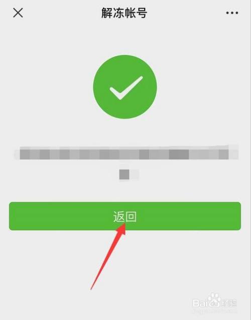 然后提醒解冻当作功,点击【返回】就可以了。