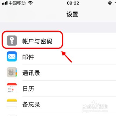 在设置app页面中,滑动屏幕找到账号与密码功能按键,点击并进入;