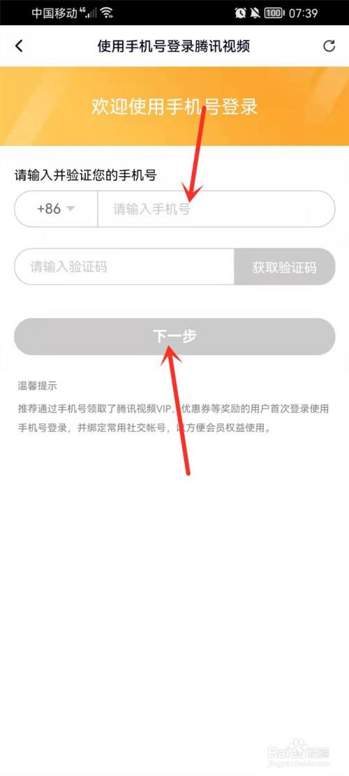 输入手机号,点击【获取验证码】,输入验证码,点击【下一步】,即可登录新的帐号。