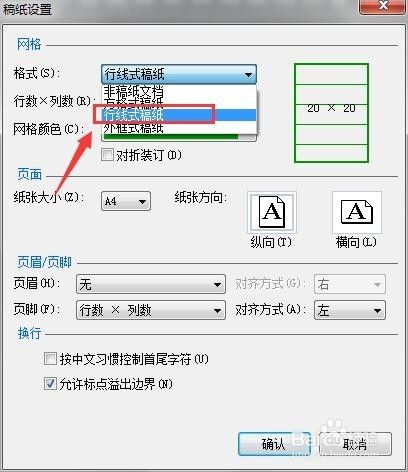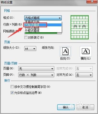 在【稿纸设置】里面,选择【方格局稿纸】,其他参数取默认值,点击【确定】,就会发现页面酿成方格局稿纸了。
