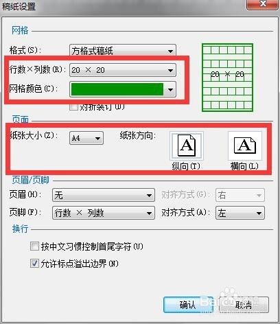 当然了,稿纸的行列数以及页面的相关参数都可以在“稿纸设置”对话框中进行设置。
