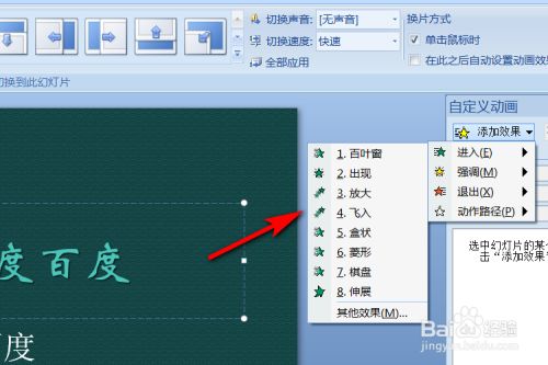 在自界说动画里面点击添加结果。
