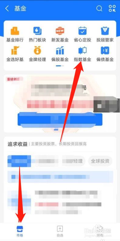 第三步、点击下方的市场,接着点击上方的指数基金