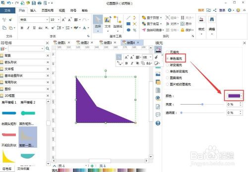 点击单色填充,选择紫色,我们就建立好了一个剪断一面三角形。