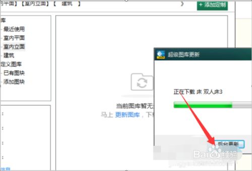 然后,完当作上述步调后,在超等图库对话框中,可以看到图库下的子图库,点击【室内立面】睁开,可以看到当前图库暂无素材,如下图所示,然后进入下一步。