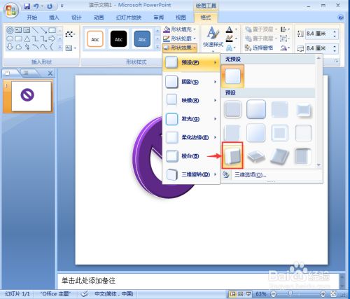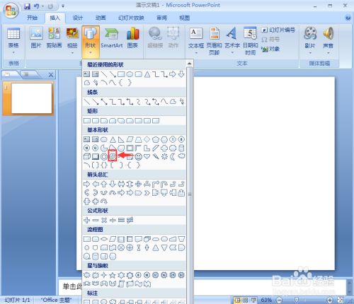 点击插入菜单,选择外形东西,在根基外形中选择禁止符;