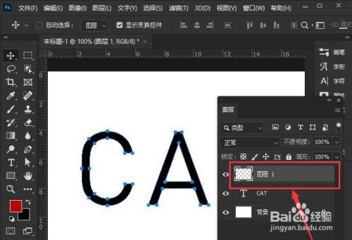 3.在文字图层上新建一个空白图层