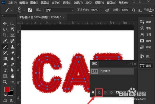 5.点击路径面板中的用画笔描边路径按钮,即可建造出毛绒文字结果