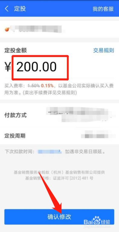 第八步,这时辰我们只需要点窜本身定投的基金点击确认点窜即可