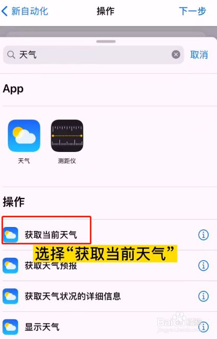 9、输入完当作后,下一步就是成立气候内容。输入气候进入搜刮,选择获取当前气候。