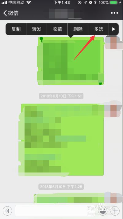 长按发送过的信息2到3秒,直到呈现一个框框,点击多选。
