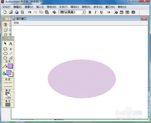 按下鼠标左键不放,在演示窗口拖动鼠标,画出一个椭圆;
