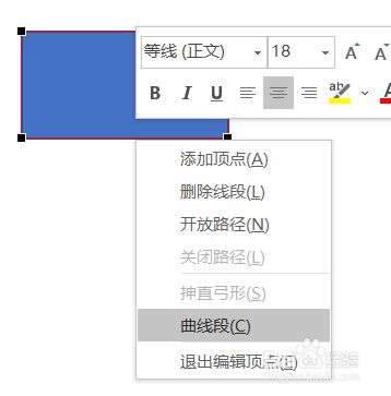 在编纂极点呈现后,在矩形下边上右键单击,选择曲线段。