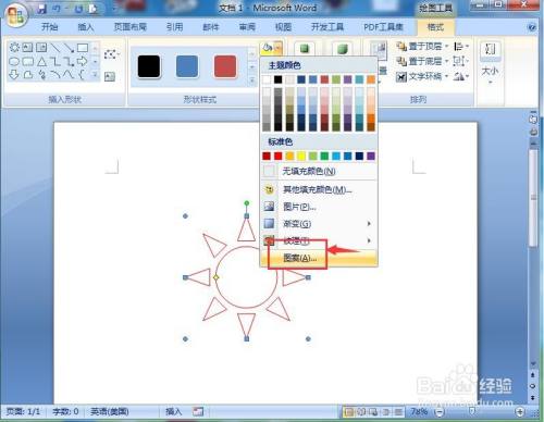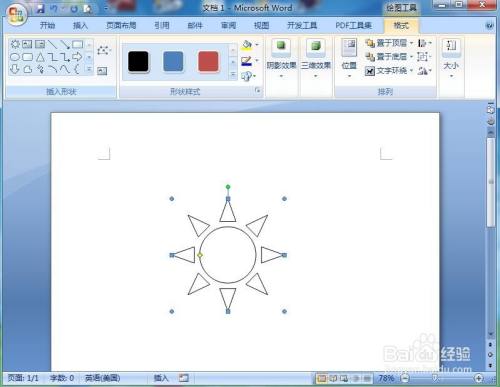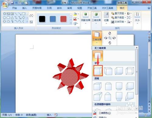 我们就在word中给太阳形添加上了红色球体图案和三维结果。