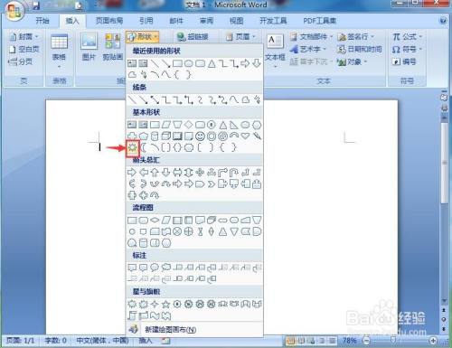 点击插入,选择外形东西,在根基外形中选中太阳形;