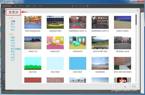 进入到scratch的布景库中;