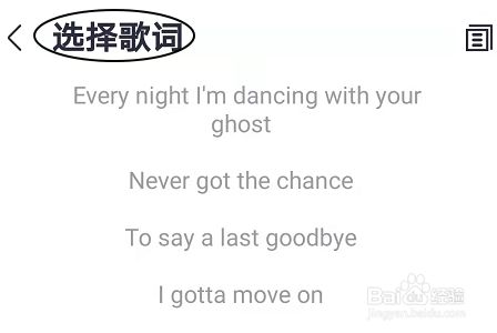 长按歌词的肆意位置,这样就会跳转到下图所示的“选择歌词”页面;