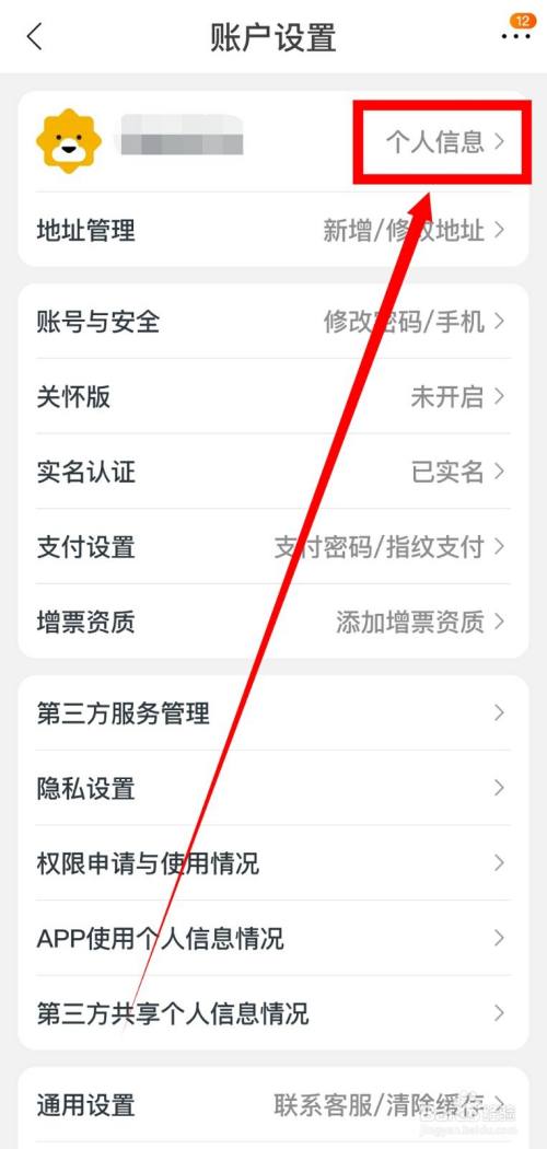 随后在账户设置里点击进入小我信息。