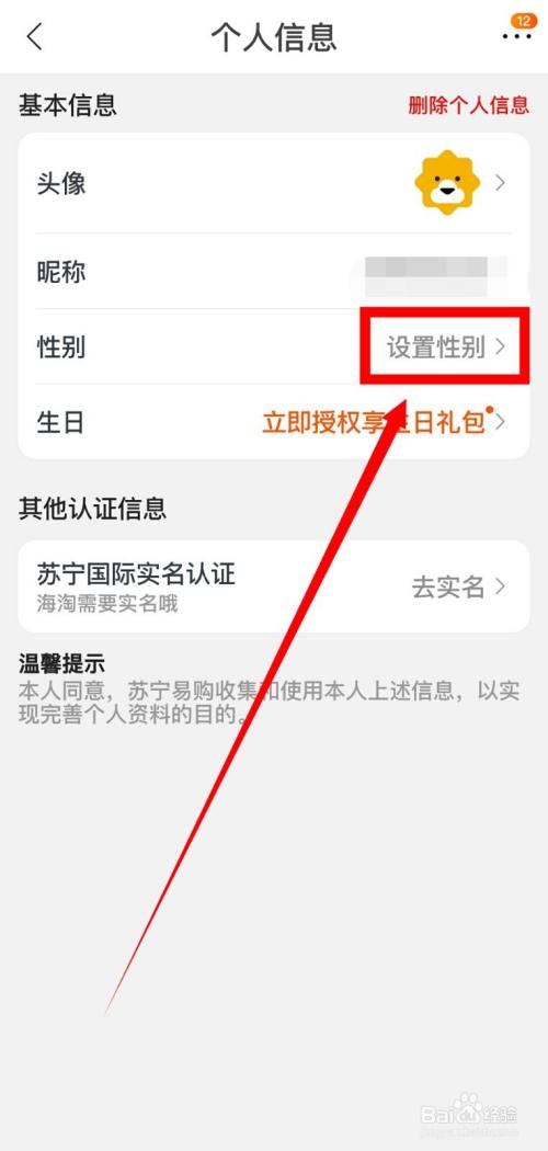 接着找到性别一栏点击设置性别。