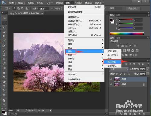 点击滤镜菜单,在锐化中点击锐化边缘;