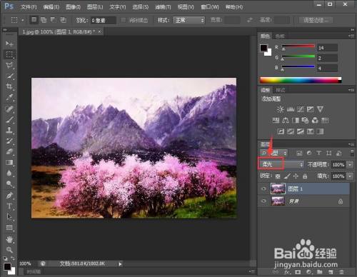 将图层夹杂模式设为柔光;