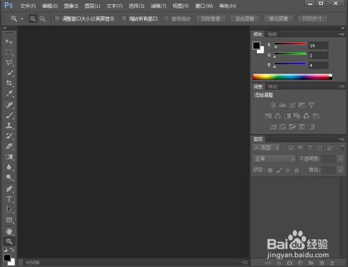 打开ps cc,进入其本家儿界面中;
