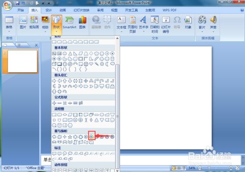 点击插入菜单,选择外形东西,在星与旗号中找到并选择十角星;
