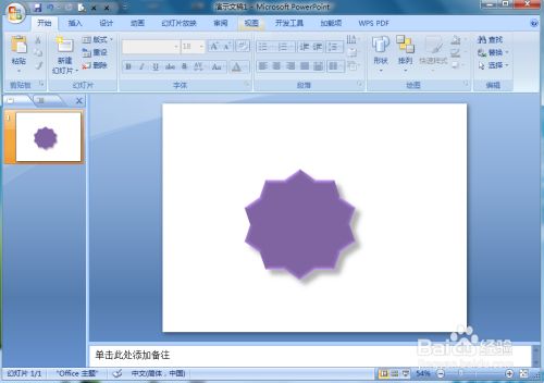 我们就在powerpoint中建立好了一个紫色十角星。