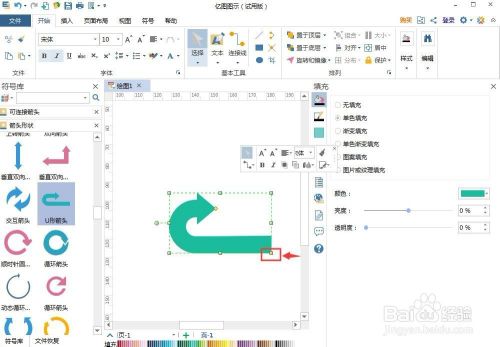 用鼠标拖动右下角的小矩形,调整好U形箭头的大小;