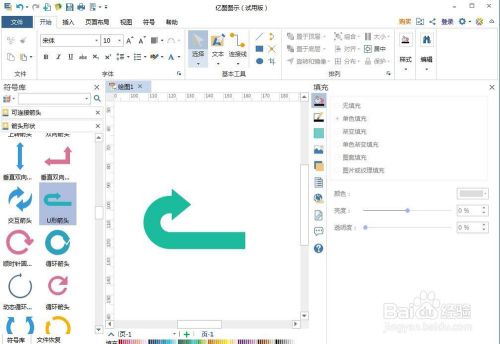 2、进入箭头外形符号库中,找到并双击U形箭头;