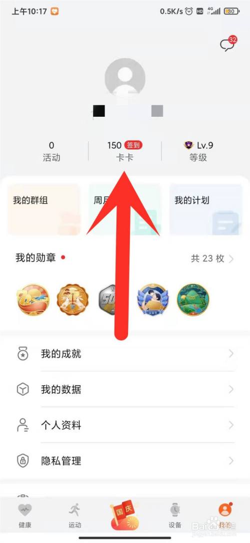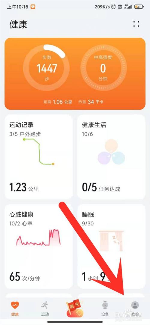 我们在活动健康的界面,点击右下角的我的。