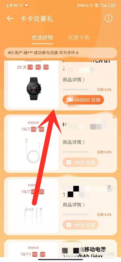 选择本身喜好的物品,利用卡卡兑换即可。