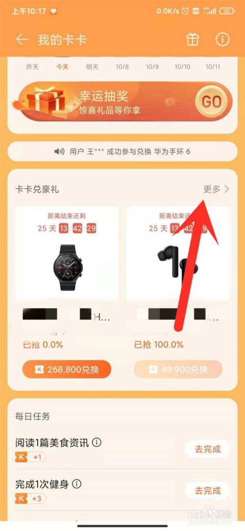 我们在卡卡兑换好礼这里,点击更多。