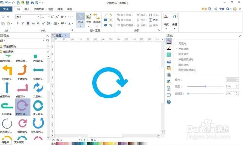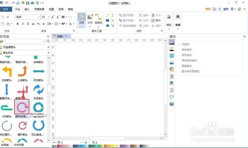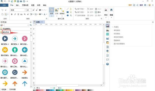 2、进入箭头外形符号库中,找到并双击顺时针圆箭头;
