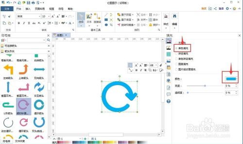 点击单色填充,选择需要的蓝色,给箭头填充上这种颜色;