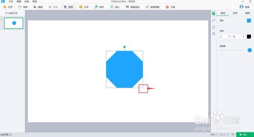 用鼠标移动八边形右下角的小圆形,调整好八边形的大小,标的目的外移动是放大,标的目的内拖动可以缩小;