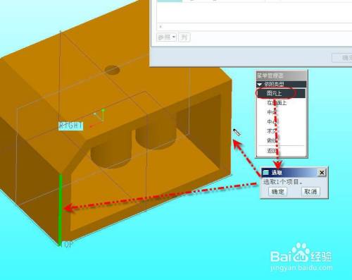3、打消添加注释对话框后,返回【注释特征】对话框,点击【编纂偏向】,然后选择图示的端面作为参照平面,点击【确定】