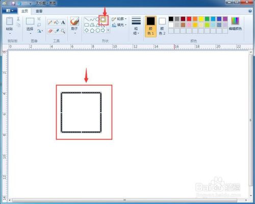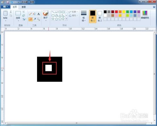 1、打开绘图程序,绘制一个矩形,填充上黑色;