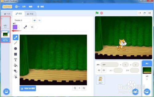 打开布景后,就可以看到适才添加进来的剧场布景,上面还有默认的白色布景,共有两个布景,申明添加的布景没有将默认的布景笼盖。