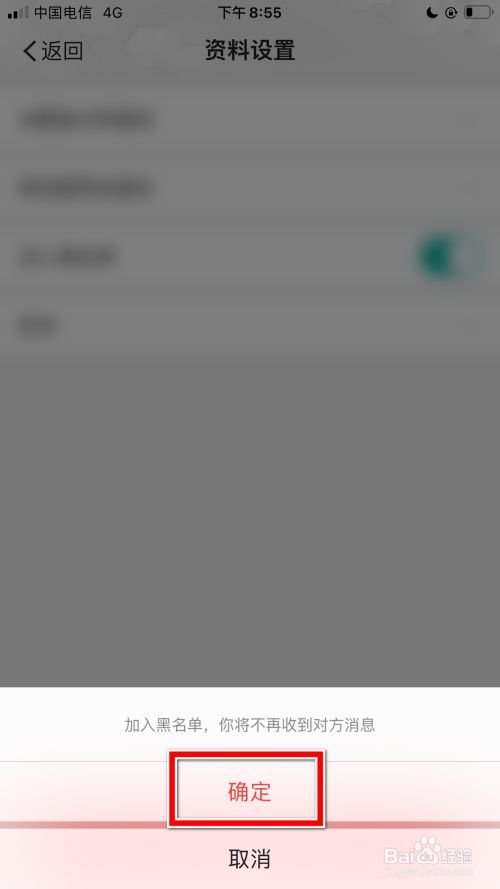 下方弹出提醒框中点击确定的选项,即可拉黑聊天对象。