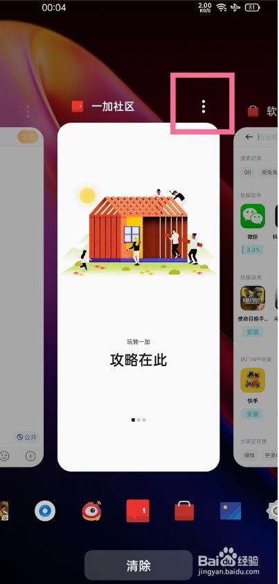 4、也可以在多使命页面,长按想要分屏的应用,点击右上角有三个点,选择分屏/浮窗。