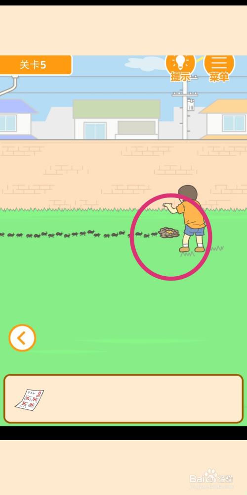 工具/原料华为nova8EMUI10.1.0藏起试卷吧v1.1.2方式/步骤1首先,点击拿到桌子上的蜂蜜罐子。2进入右侧场景,把蜂蜜倒入蚂蚁窝内。3然后,再拖动【试卷】放入蚂蚁窝里。4妈妈走过来后,就会拿起沾有蜂蜜的【试卷】。5最后,妈妈惨遭蚂蚁围攻,游戏过关。END注重事项适度游戏益脑,陷溺游戏伤身。合理放置时候,享受健康糊口。