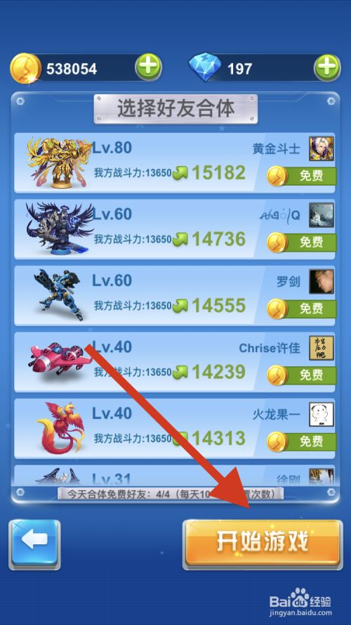 5.进入之后,可以选择合体的队友,点击右下角的【起头游戏】。