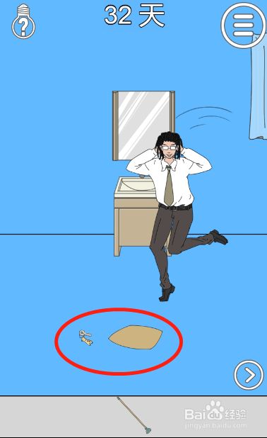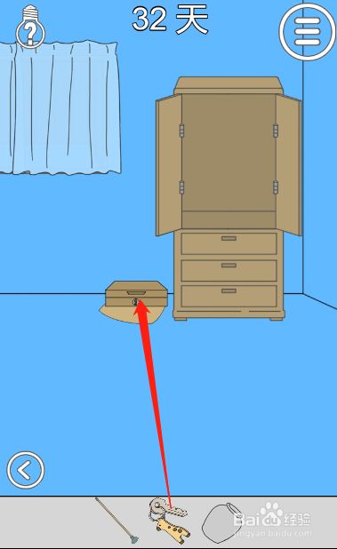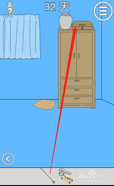 工具/原料联想小新13window10方式/步骤1首先我们拿到放在墙角的拖把2接着用拖把给爸爸做一顶假发3然后趁着爸爸赏识秀发的时辰拿走垫子以及垫子下面的钥匙4接着切换到右边的场景,并将抱枕放到柜子的左边5接着利用拖把将柜子上面的箱子弄下来6最后用钥匙打开柜子并拿到辣条即可END