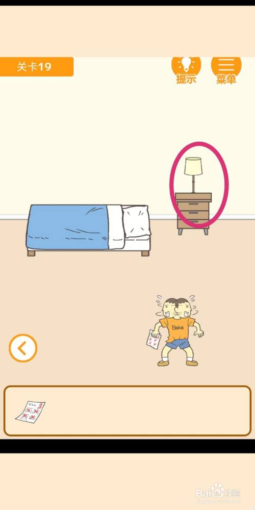 试卷被卷当作灯罩,这样就不会被妈妈发现了,游戏过关。
