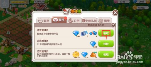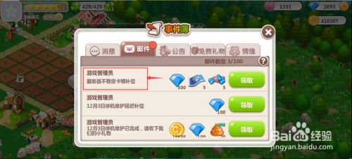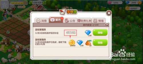 在打开的邮件中找到游戏办理员发送的办事器不不变卡顿抵偿邮件;