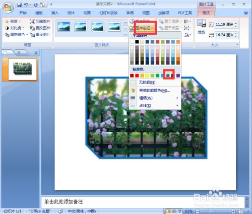 我们就在powerpoint中给图片添加上了蓝色裁剪对角线边框。