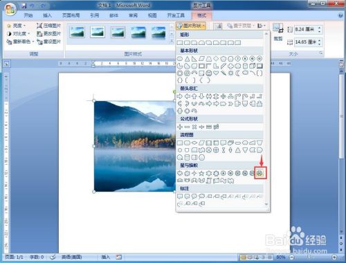 2、插入一张图片,点击图片外形,选择星与旗号,点击三十二角星;