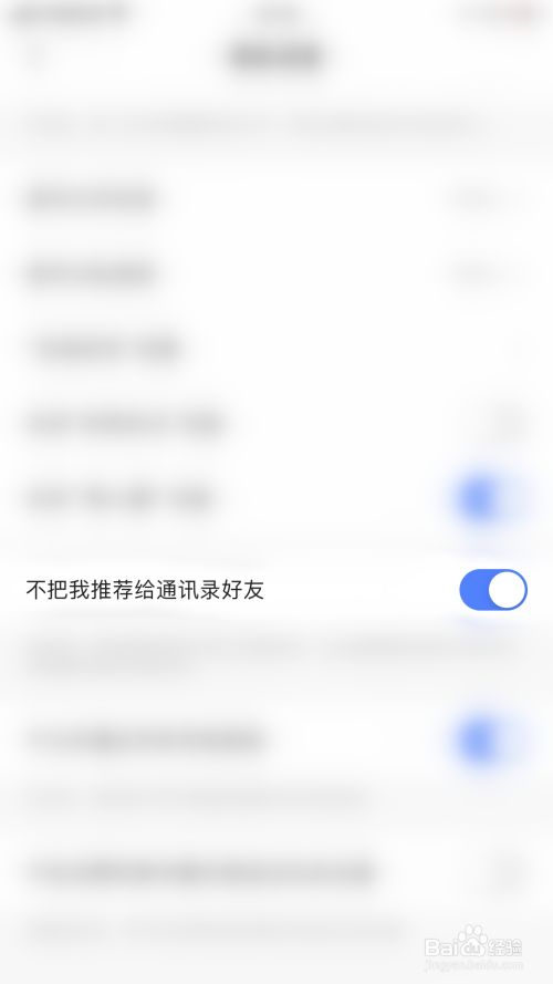 隐私设置界面点击“不把我保举给通信录老友”后面的圆点