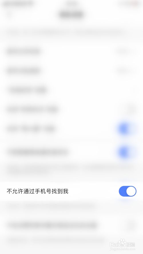 隐私设置界面点击“不许可经由过程手机号找到我”后面的圆点